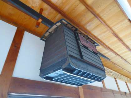 副住職から寺の由来や近くの品野城のことを聞き、品野城の殿様が使っていたであろう籠の実物を見せてもらいました。