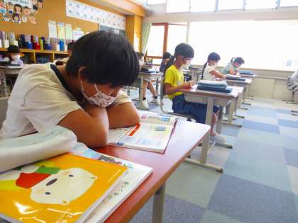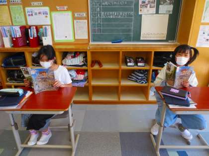 副読本「せと」を使って瀬戸市の水の使用量の変化を読み取っていました。