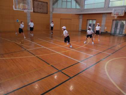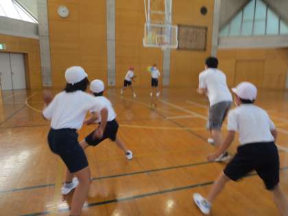 体育館でドッジボールです。こちらも体育が好きな子が集まっているので、学級でやっているドッジボールより球のスピードが速いし、キャッチや逃げ方も格段にう上手です。