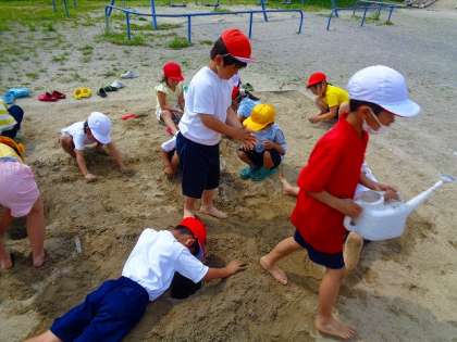 思いっきり遊ぶので、体操服が砂まみれになったり、水がついたりと後が大変でした。