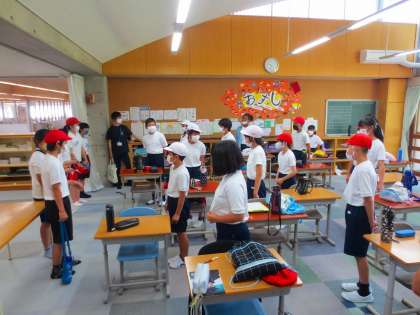 瀬戸市は小中一貫教育を推進しています。その一貫として品野台小学校は掛川小学校との交流を促進することになりました。今日は5〜6年生は合同で体力テストを行いました。