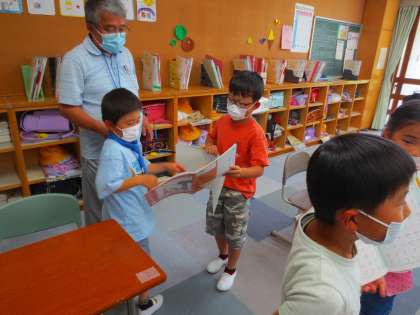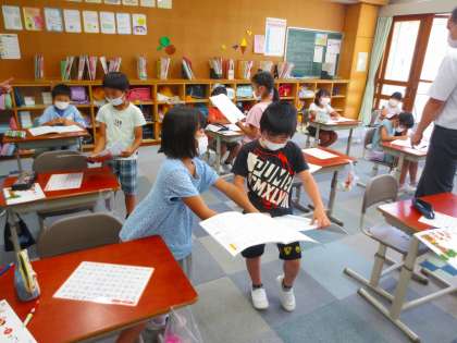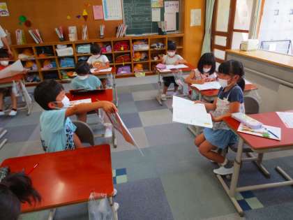 品野台小の児童は交流したくてたまらないので、話し合いのときにはその子に殺到しそうだったので、一応隣同士になりました。