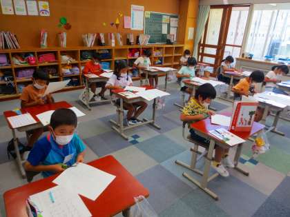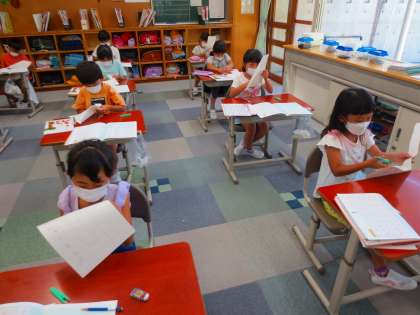 2年生の書写に掛川小学校の2年生が1人参加しました。小小連携です。普段は一人で学習しているそうです。