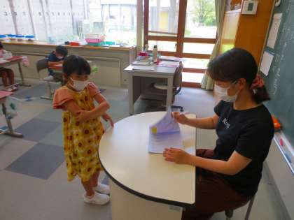 「校長先生に綺麗な字をみてもらいましょう」と担任が話すと、とたんに真剣モードになりました。素直ですね。
