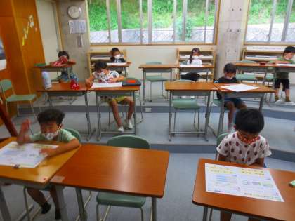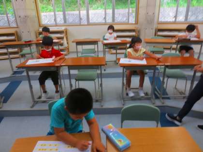 おやおや音楽のテストプリントをやっていますねぇ。