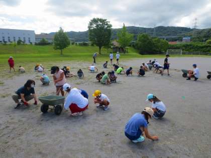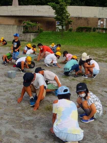 実質的に夏休み前最後の週が始まりました。せみが一斉に鳴き始め、本格的な夏が始まる予感です。さて、雨上がりは絶好の草取りのタイミングです。今朝も3〜6年生はみんなで協力して草を取りました。
