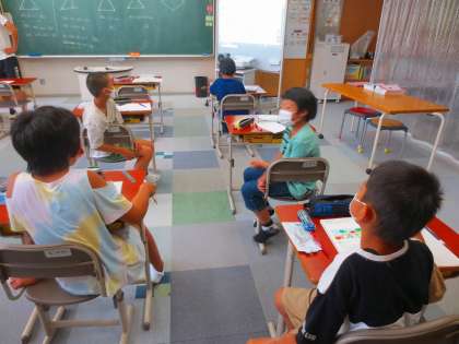 図形について席の近い者同士で話し合いをしていました。