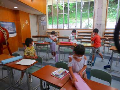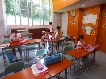 ピアニカの音がしていたので撮影しようと思っていたら、あらら、片付けのタイミングになってしまいました。「校長先生、残念だねー」と慰めてくれました。