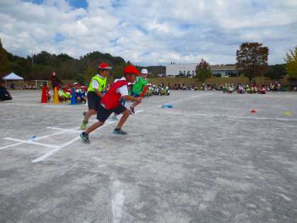 全員でリレーしているのですが、さすがに全員を撮影するのは難しく、写っていない児童もいます。