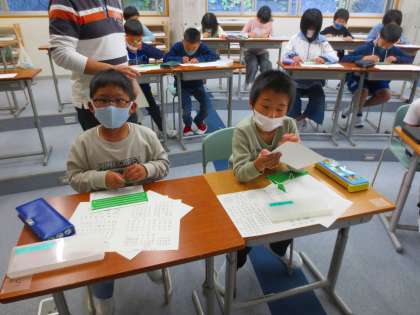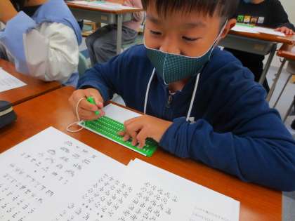「できた!」と声があがったので、見せてもらいました。「これ読める?」と質問されましたが、残念ながら私は読めません。