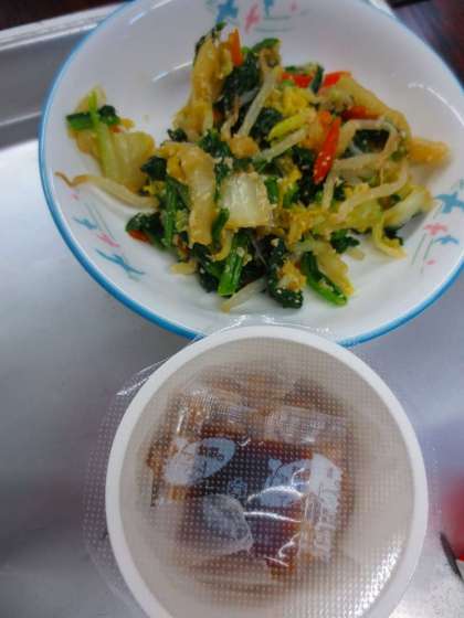 おっと納豆がついています。学校の納豆は、あまりネバネバしません。またタレがついていますがしっかりと味がします。納豆が苦手な児童も多いので、いかにも納豆と見た目も味もならないように配慮されていのではないかと思います。