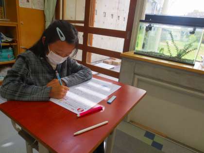 まさにテストをやっている真っ最中に訪問しましたので、鉛筆の音しか聞こえません。