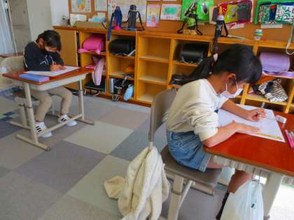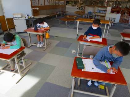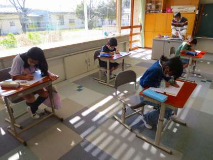 日が差して暖かいので、半袖の児童もいました。
