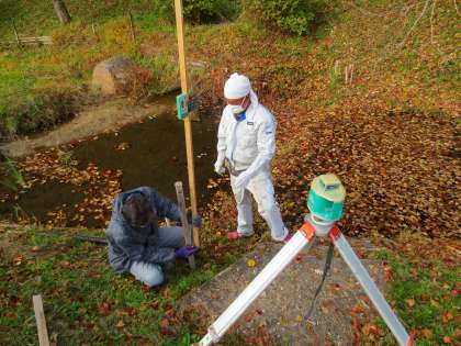長年の土砂の流入によって、ビオトープが荒れています。土留めの木も朽ちており、橋もなくなりました。