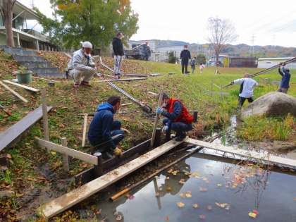 そこで、瀬戸市、地域自治体、PTA費を使い、ビオトープの整備を進めることになりました。その第一歩です。