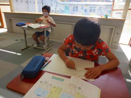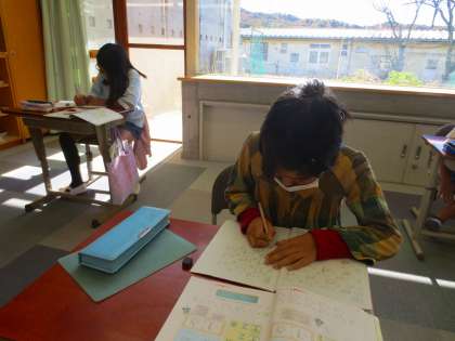 筆算がたくさんあり、一心不乱に取り組んでいます。