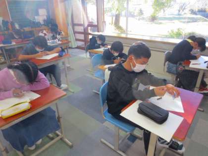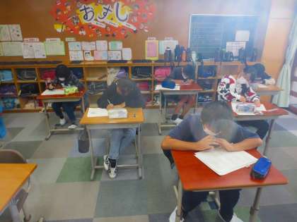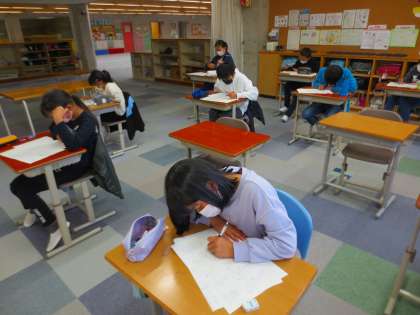 どの学年も1時限目にがんばりテストをするというので、6年生から順にのぞいていきました。