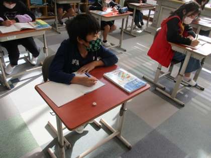 少数を分数にする学習をしています。けたの違ういろいろな少数を分数にしています。