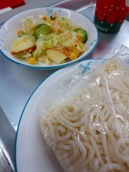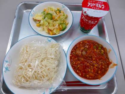 ミートソースとソフト麺です。