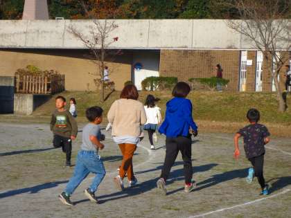 いつも送迎をしている方々で、「一緒に走りませんか」と声をかけたら、走ってくれました。子どもたちにとってはうれしい出来事です。