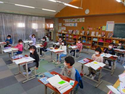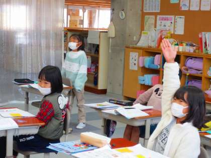 授業の様子を撮影し始めたら、姿勢は良好、挙手はピーンとまっすぐ!