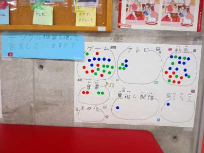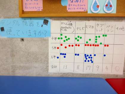 学年別のアンケートを見ていて、6年生になるとぐっと携帯の保持が目立ち始めることがわかります。そしてゲームや動画を見ていますね。