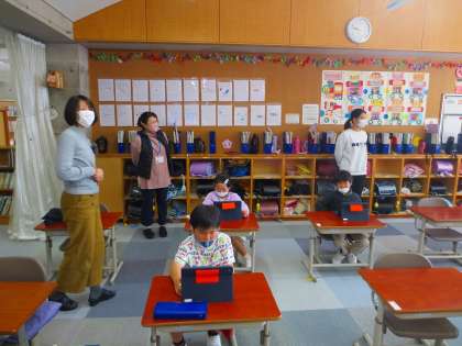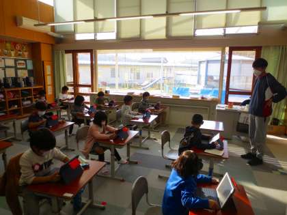 明日、1年生はタブレットも持ち帰りをしますので、急ピッチでタブレットに触れる機会を増やしています。