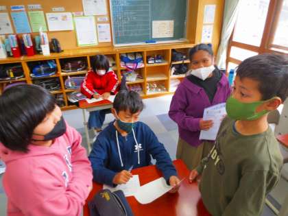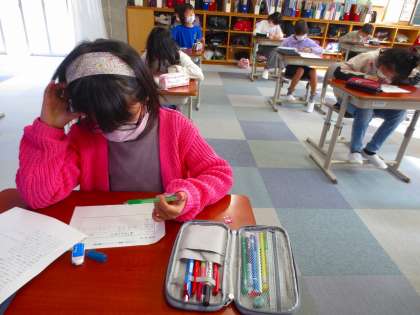 4年生もテストかなと思いましたが、人権週間にあわせて標語を考えていました。