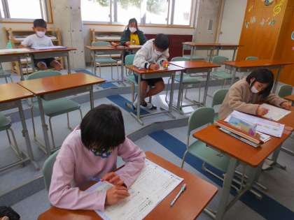 こちらは楽譜に出てくるいろいろな音符などのプリントをやっていました。