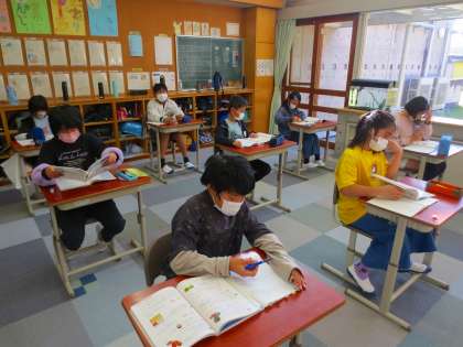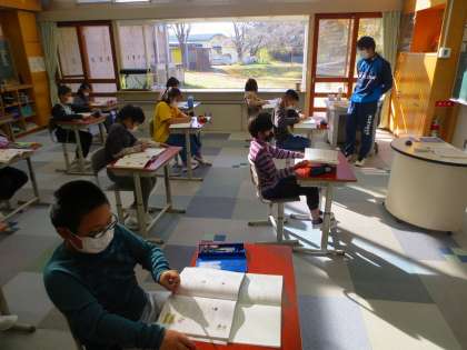 教室内に明るい日差しが差し込んでいます。その上、床暖で教室内はぽかぽかです。