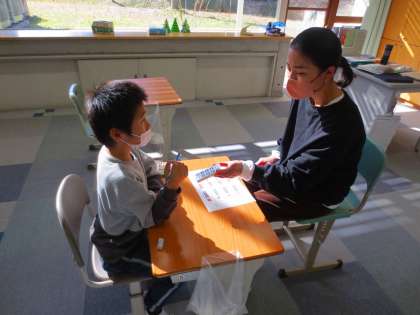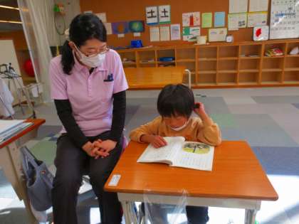 今日はひとり欠席でしたので、先生がそれぞれマンツーマンで、指導しています。