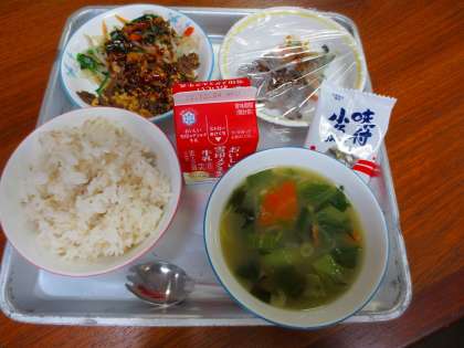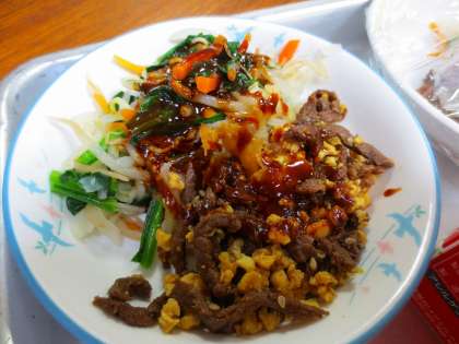 ビビンバでした。お肉の色が少しちがうので聞いてみたら、いつもは豚肉のところを今日は牛肉なんだそうです。