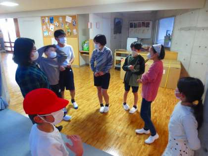 今日は新しい場所での清掃初日なので、だれがどんな清掃を担当するかを決めています。