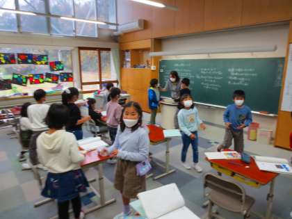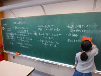 図書館見学のことについて、たくさん黒板に書かれていました。いろんな気づきがあって、意見が出たんだと思います。