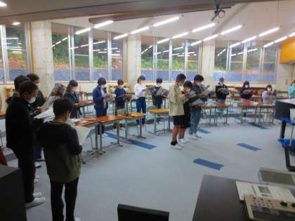 卒業式で歌う予定の曲の練習が始まっています。