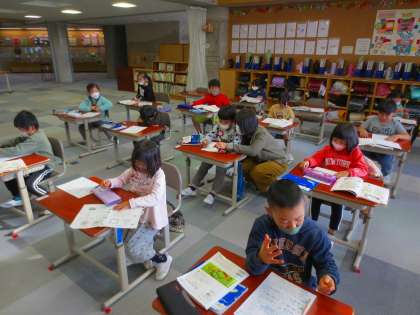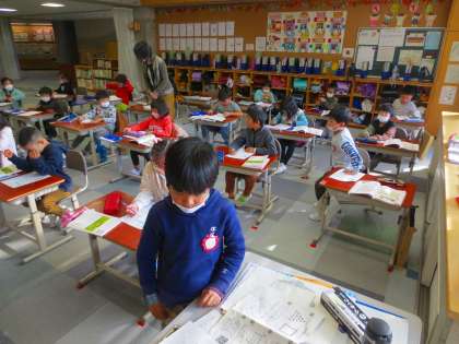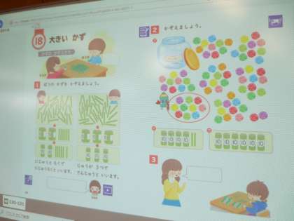 足し算をしています。指を使う子もいますし、使わず声でたしている子もいます。