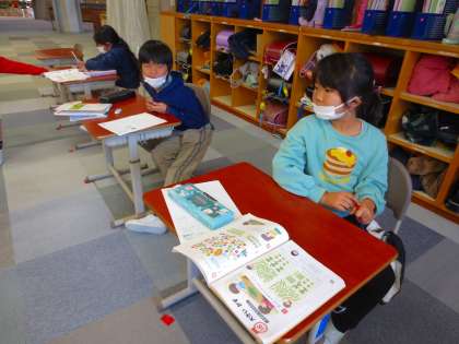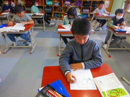粘り強く自力で考えて答えを導きだそうという意欲があるので、早く終わった児童もじっと待っています。