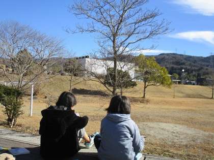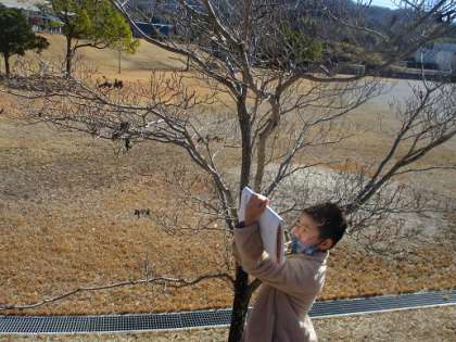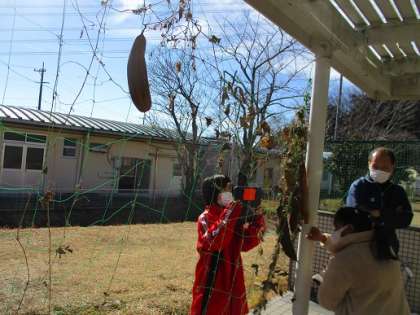 寒くなった時の、ハナミズキやヘチマの観察をしています。近くまでいって自分で見たり、タブレットで写真を撮ったりして、こまかいところまでしっかり観察しています。ハナミズキとヘチマで冬の越しかたに違いはあるのでしょうか?