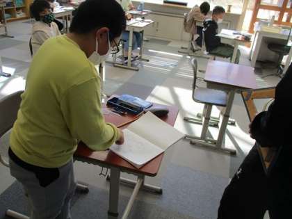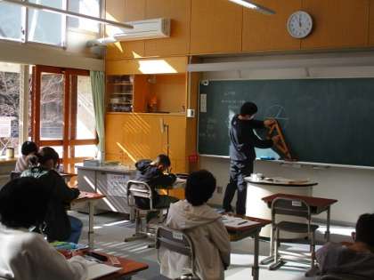 円と正多角形の学習をしています。正六角形をどのように書くかを考えています。円の中心を六等分して書く方法や、コンパスだけを使って書く方法を発表していました。