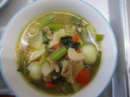 今日のメニューは、白玉雑煮、にしんのゆずみそ煮、れんこんのごま酢あえ、ご飯、牛乳、かみかみ黒豆です。