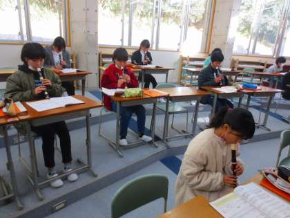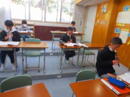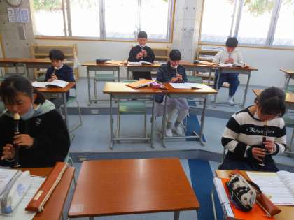 リコーダーの音が聞こえるので音楽室に行って見ると、6年生が練習をしていました。