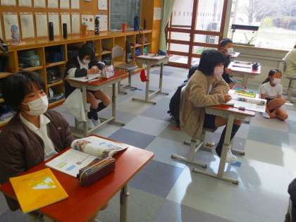 メディアの学習です。編集会議をしている場面を見ながら、どんなことをしているのかを確認しています。