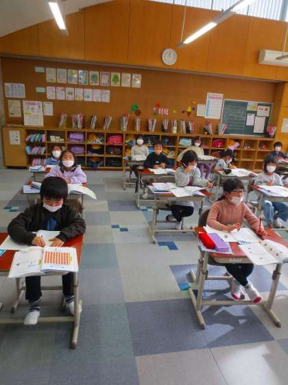 とても賑やかな2年生です。担任が発言すると一つ一つに反応し、いろいろと言うので、なかなか先に進みません。でも雰囲気がGOODです!