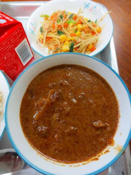 ルーから作る品野台ハヤシライスです。学校でしか食べられない唯一無二の美味しさです。