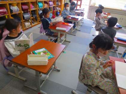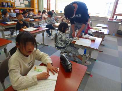 大人がていねいに字を書くと、児童もていねいにかきます。