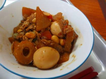 味噌おでんですね。ウズラの卵が2つ入っていました。