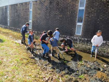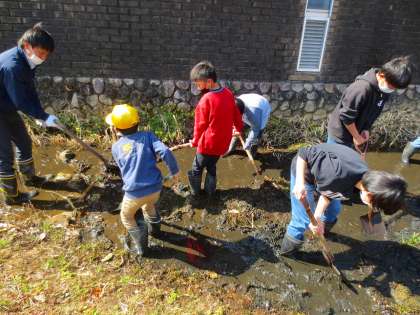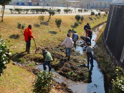 せせらぎも土砂が流れてくるので、少しずつ整備しています。