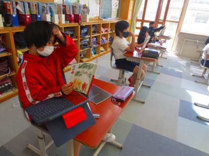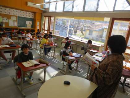 一人ずつ音読をしています。みんなの前ですらすらと読む経験もたくさんやっておきたいことで。