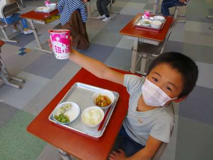 何人かの児童が気づき、全体でわいわい騒いでいます。