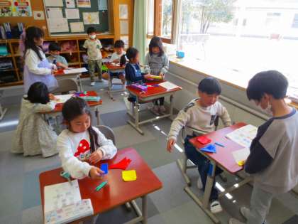担任が個別に話をしている時でも、友だち同士で学び合いながらちゃんと学習を進めています。さすがです。しっかりしてきていますよ。